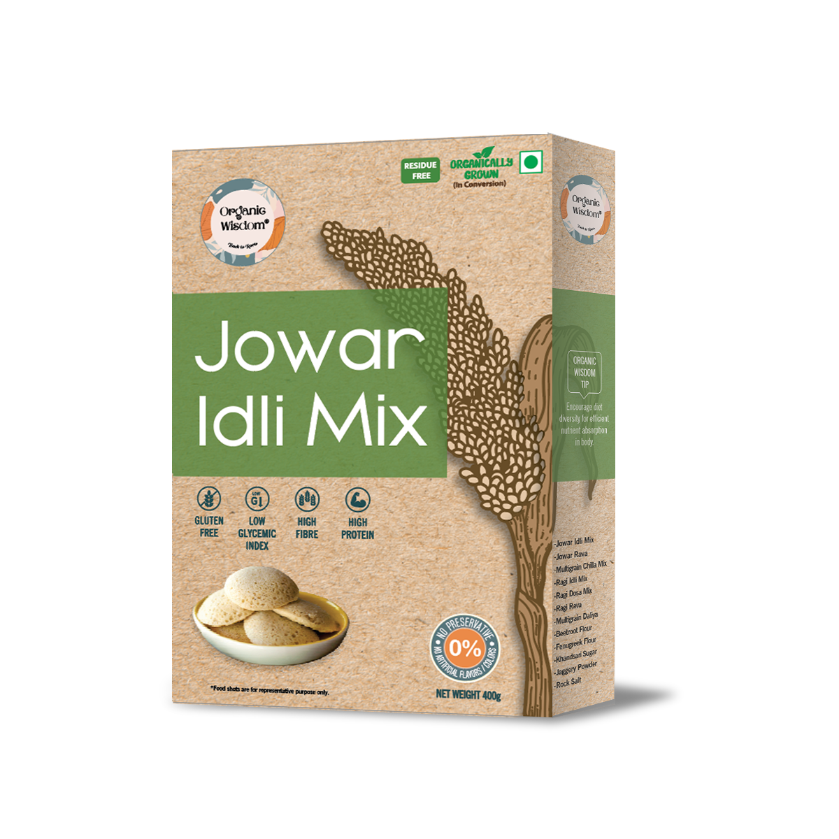 Jowar Idli is rich in protein & dietary fibre. Jowar (Sorghum) is gluten free & loaded with many other essential nutrients. It's a nutritious and delicious breakfast alternative for you and your family. With Organic Wisdom's JOWAR IDLI MIX, make this delicious breakfast.