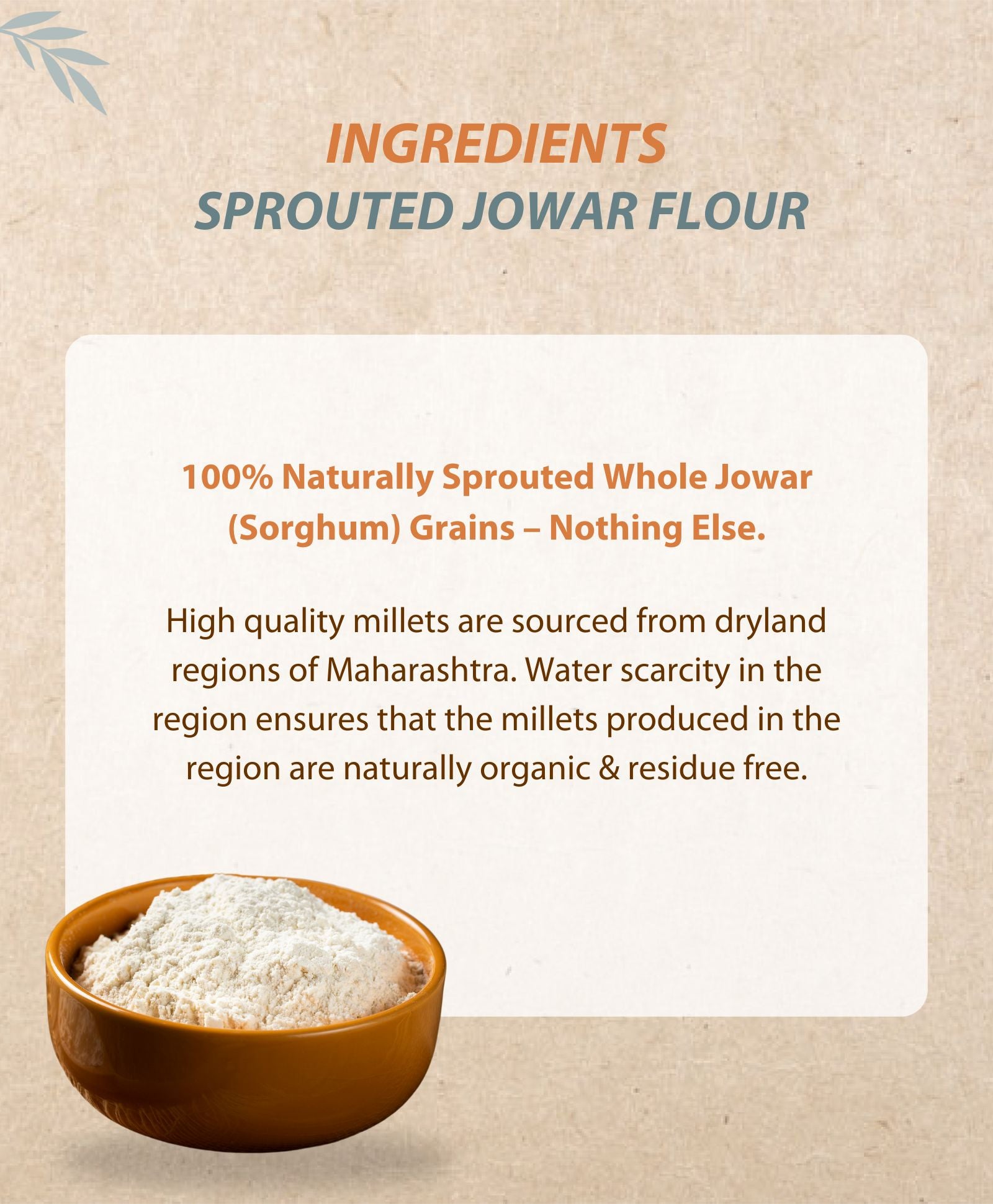 Our jowar/sorghum is locally and sustainably sourced from dryland region of Maharashtra. Since, region receives scanty rainfall, this ensures millets produced in this region are naturally grown and residue free. With our online organic store, you can order Sprouted Jowar Flour online and enjoy the wholesome journey.