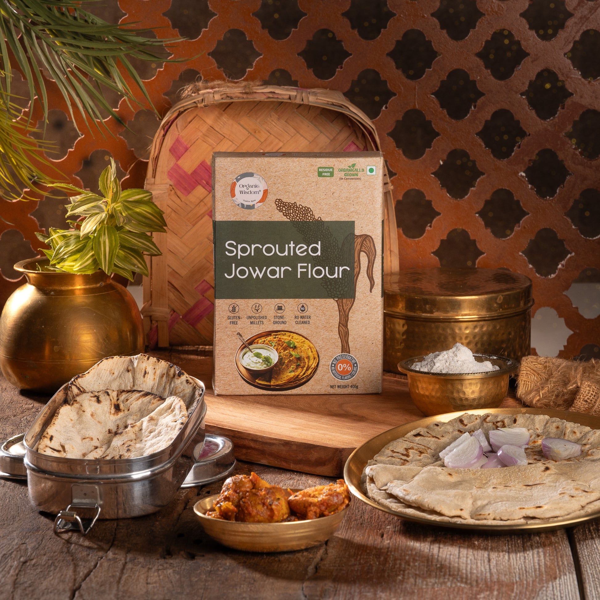 Our Sprouted Jowar Flour is made from 100% whole jowar grains that are naturally sprouted to unlock their full nutritional potential. Rich in plant-based protein, dietary fiber, and essential micronutrients, it’s a wholesome flour that supports your wellness journey—whether you're making soft rotis, gut-friendly dosas, or even guilt-free baked goods.